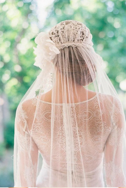 Este tipo de velo es muy cómodo, ya que su largo no supera la altura de los codos o sea hasta la cintura de la novia. El velo se sujeta por lo general atrás del peinado de la novia por lo que inicia desde la mitad de la cabeza, es muy favorecedor para las novias con rostros ovalados. Las novias con orejas grandes o muy sobresalientes no deberían usarlo, ya que deja todo el rostro descubierto.